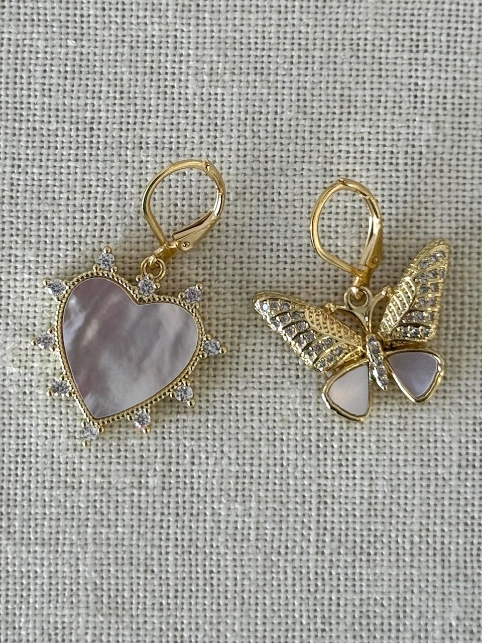 Spike Heart and Butterfly Pearl Earrings